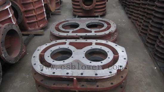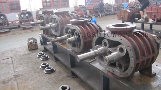 羅茨風(fēng)機機殼內(nèi)部裝有一對轉(zhuǎn)子部,轉(zhuǎn)子部是由葉輪和軸經(jīng)熱